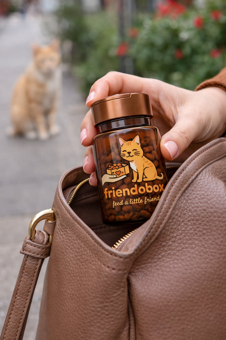 friendobox is a pocket-sized food box designed to befriend stray animals.