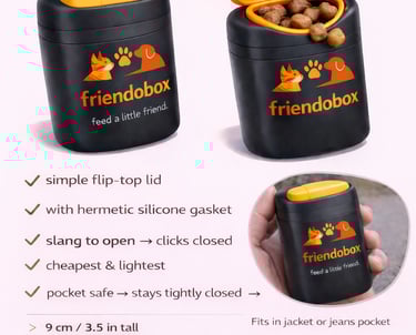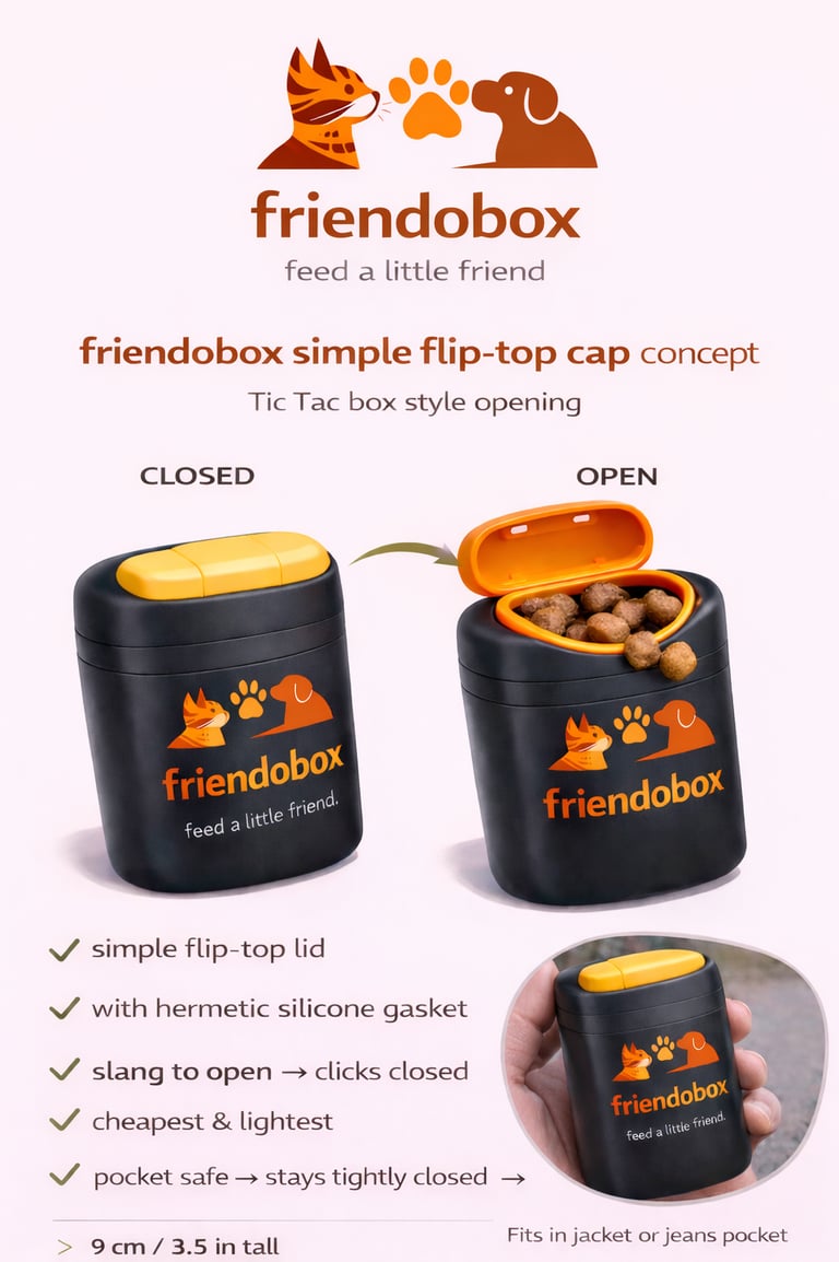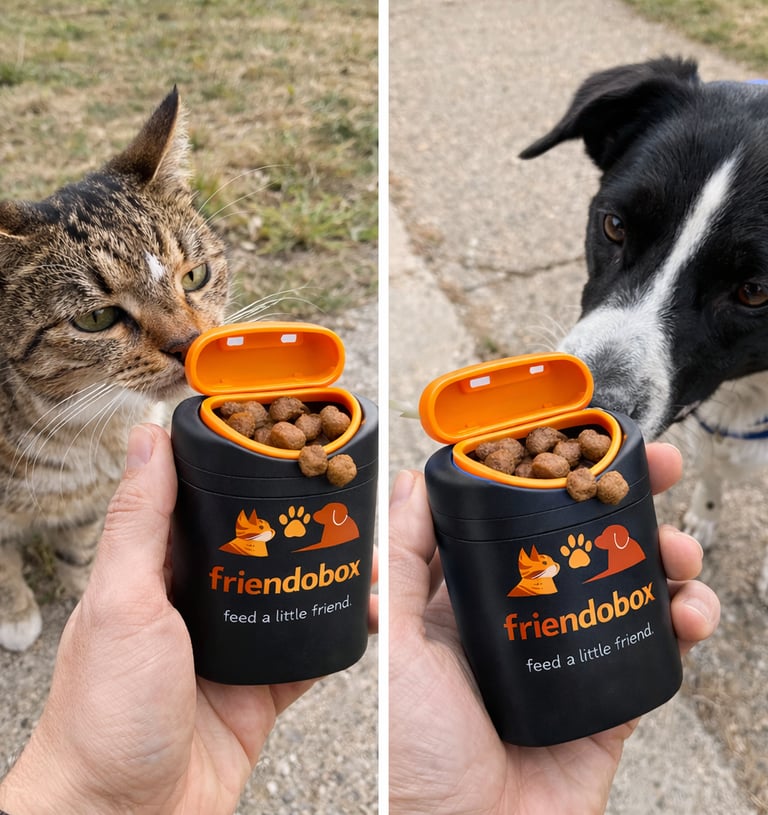 friendobox is a pocket-sized food box designed to befriend stray animals.